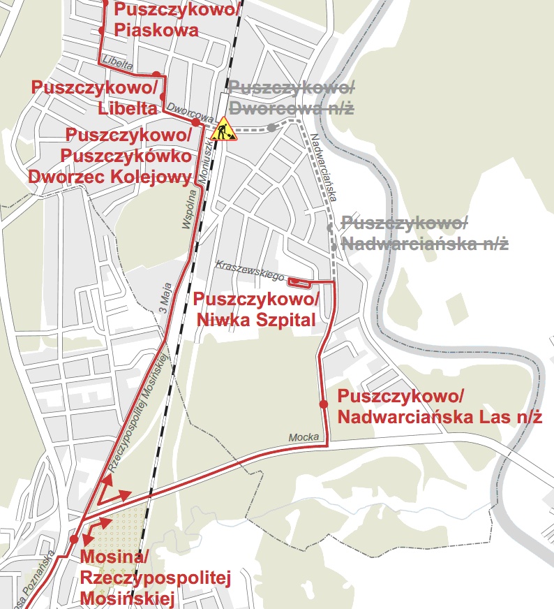 Z użytkowania wyłączone będą przystanki Puszczykowo/Dworcowa oraz Puszczykowo/Nadwarciańska.