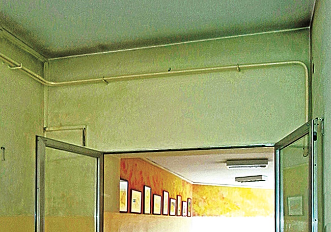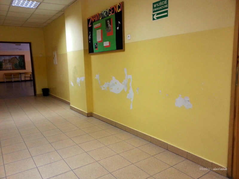 Obdarte z farby ściany przy gabinecie dyrektora szkoły