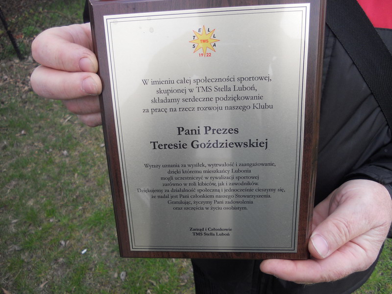 Do niedawna prezes Stelli – Teresa Goździewska – otrzymała od zarządu klubu okolicznościowe, ozdobne podziękowanie za zaangażowanie sportowe fot. Władysław Szczepaniak