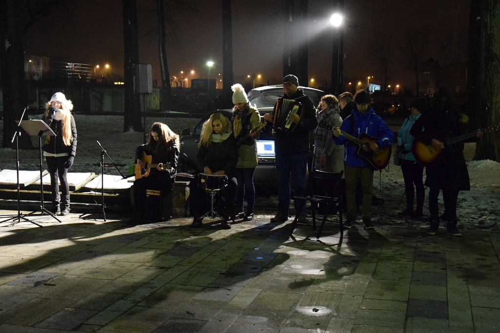 Uczniowie lubońskich gimnazjów przygotowali bogaty program artystyczny – wokale, instrumenty, recytacje.