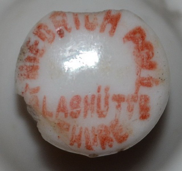 Powiększenie porcelanowej stopki korka z napisem: FRIEDRICH POLL/ GLASHÜTTE/ THURE