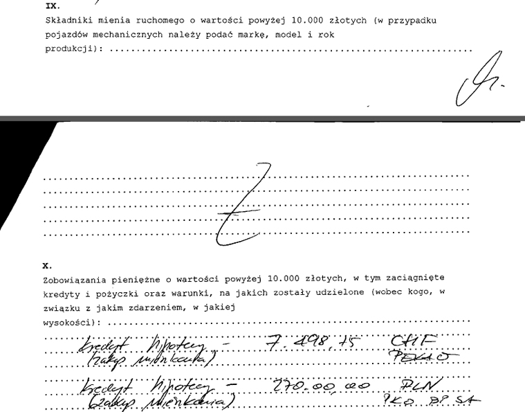 – podano niezmienioną wartość kredytu w stosunku do lat biegłych, zamiast wysokości rzeczywistego zobowiązania na dzień, na który składane jest oświadczenie: Dariusz Szmyt, Dorota Franek;