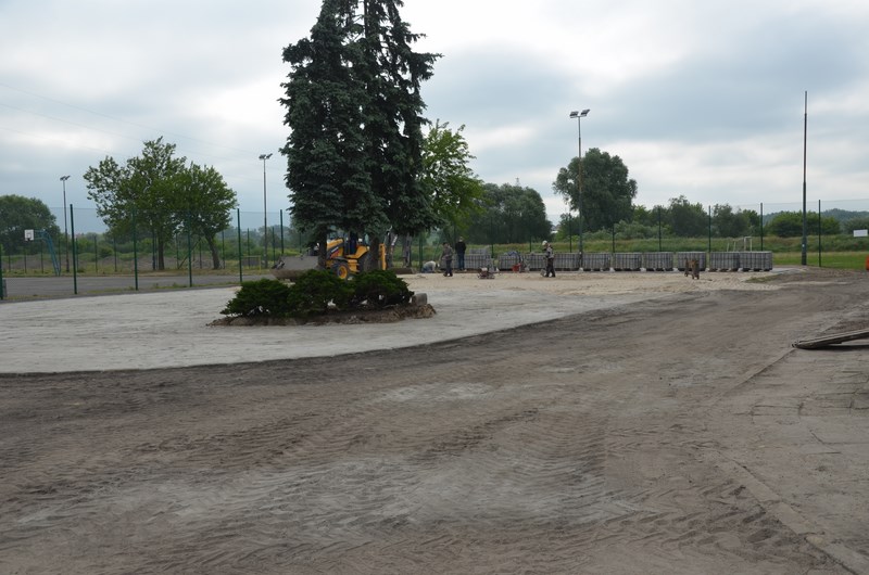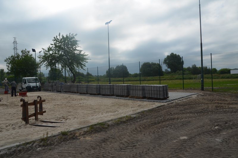 Jeśli brakuje na Twojej ulicy chodnika, to znajdziesz go na stadionie przy ul. Rzecznej. Właśnie tutaj powstaje duży plac (ok. 800 m2) wyłożony kostką brukową. Jest to obszar pomiędzy asfaltowym boiskiem, na którym znajdują się elementy skateparku, a budynkiem gospodarczo-administracyjnym.