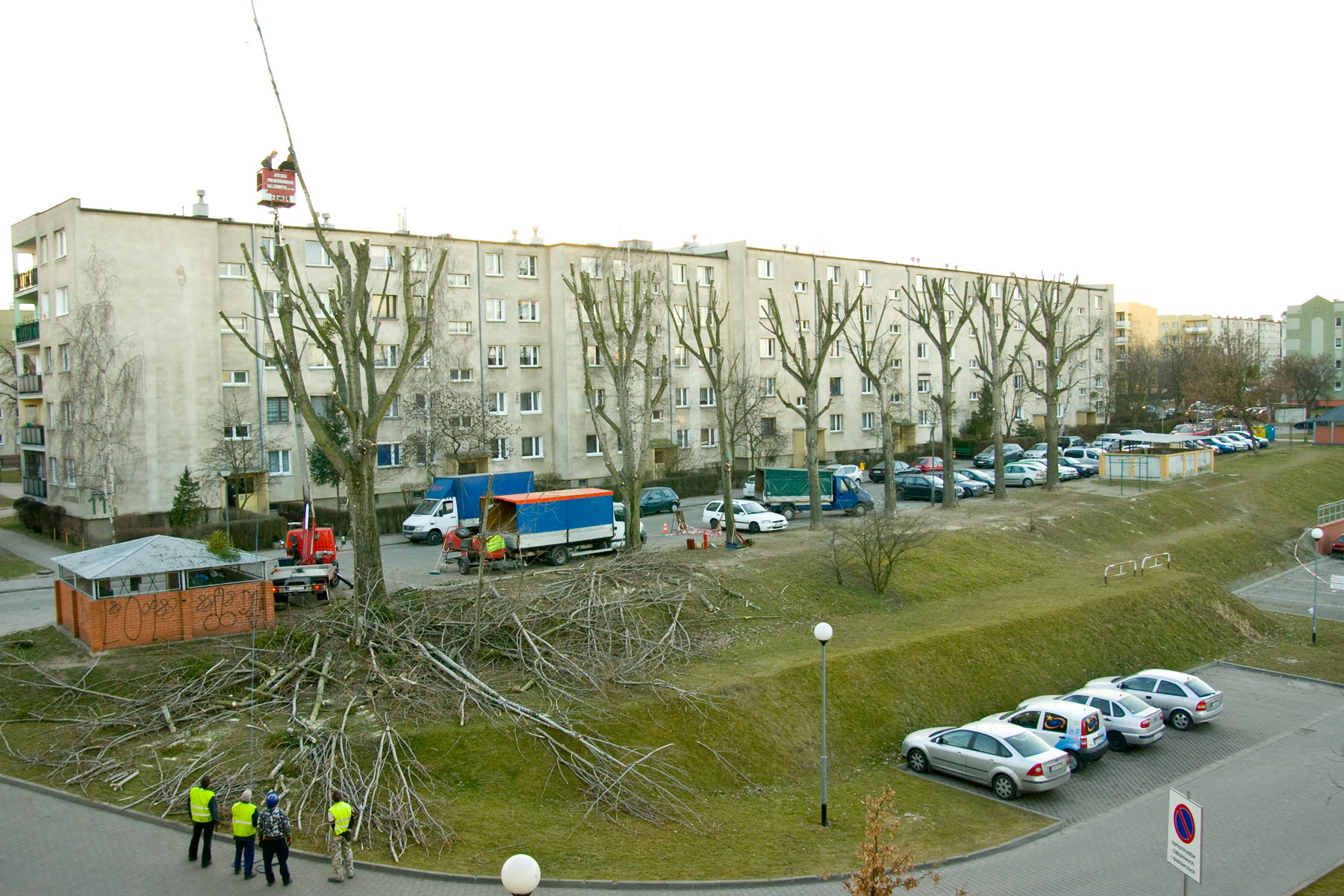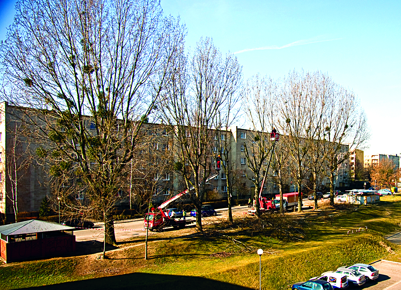 Pod koniec marca Zakład Zadrzewień Zieleni i Rekultywacji, z użyciem podnośnika koszowego, dokonał przycinki gałęzi topoli, które rosną na osiedlu „Lubonianka”. Szczególnie widowiskowe było skrócenie 8 drzew przed blokiem przy ul. Sikorskiego 11-13. Obcięte gałęzie i znajdująca się na nich jemioła zostały na miejscu zmielone i zabrane. Rozłożyste konary w czasie wichur stanowiły zagrożenie dla parkujących pod nimi samochodów. W ubiegłym roku jedna z gałęzi złamała się i spadła, szczęśliwie nie czyniąc większych szkód.