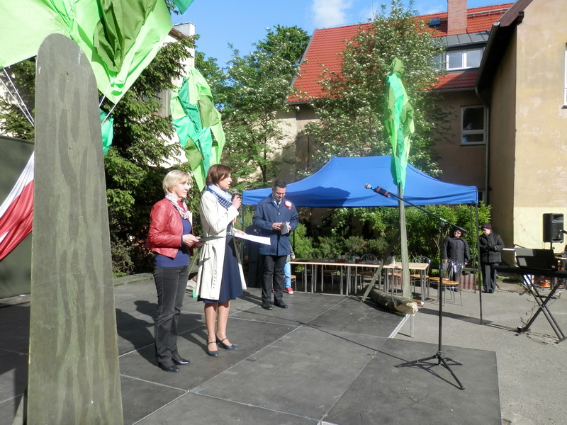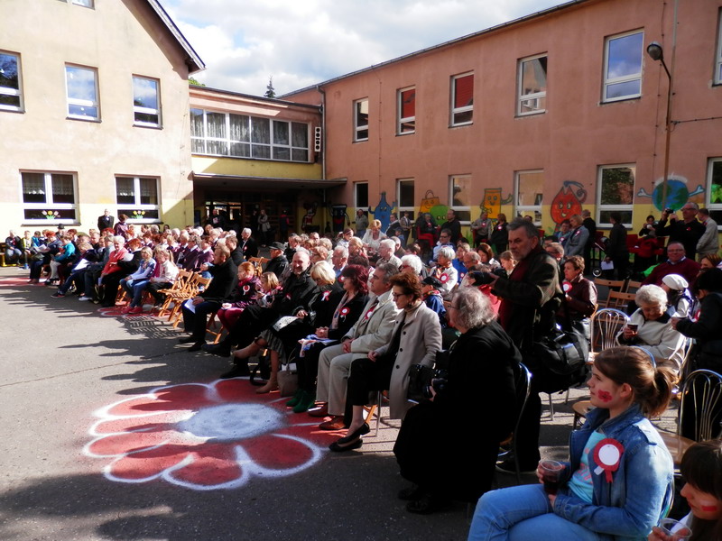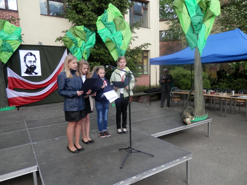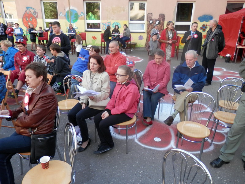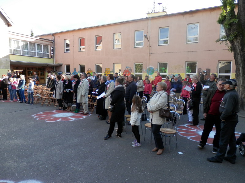 Dalsze świętowanie odbyło się na dziedzińcu Szkoły Podstawowej nr 2. Osobom przybywającym na boisko przypinano biało-czerwone kotyliony, zapraszając do wspólnego śpiewania oraz poczęstunku. Przewodnicząca Rady Rodziców – radna Małgorzata Machalska – powitała m.in. wiceburmistrzów, radnych powiatu i Rady Miasta, przedstawicieli Uniwersytetu Przyrodniczego i gości z Wierzenicy. Zastępca burmistrza Mikołaj Tomaszyk podkreślił religijny wymiar uroczystości 3 Maja. Imprezę prowadził redaktor Jacek Hałasik z Radia „Merkury” – miłośnik gwary poznańskiej, który opowiadał o polskich konstytucjach i życiu Augusta hr. Cieszkowskiego. Uczniowie i absolwenci SP 2 zaprezentowali szereg piosenek oraz przedstawienie o Auguście hr. Cieszkowskim (patronie szkoły). Gościnnie wystąpiły dwie grupy taneczne. Na końcu zaprezentował się chór „Bard”, który przy akordeonowym akompaniamencie Romana Kaczmark, dyrygowany przez Arkadiusza Klemczaka, wykonał pieśni patriotyczne, żołnierskie i legionowe. Część z nich wraz z zespołem odśpiewała publiczność. Koncert prowadziła Danuta Liminowicz.