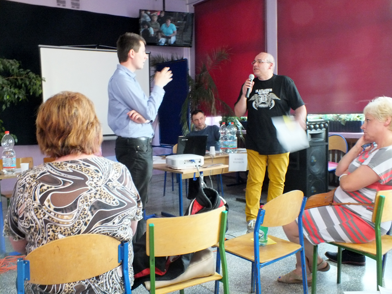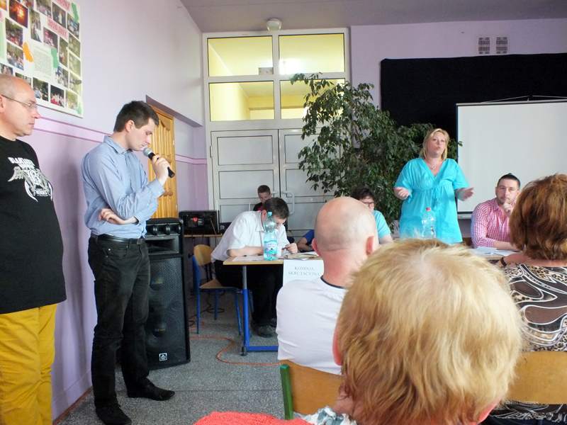Młody, prężny zarząd „Spójni” – z mikrofonem prezes Marcin Dzierżawczyk, w okularach z prawej jego zastępca Łukasz Borkowski fot. Hanna Siatka