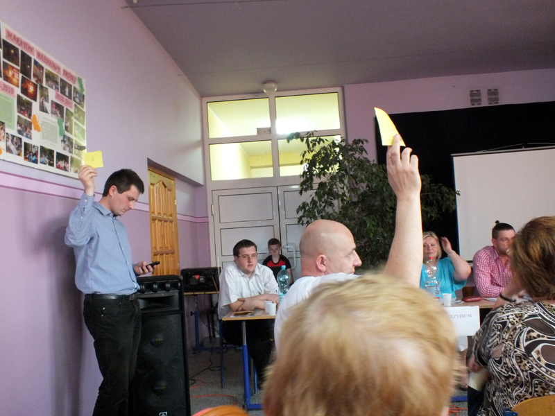 To rozbicie zaznaczyło się wyraźnie podczas walnego zgromadzenia członków, zorganizowanego w piątek, 6 czerwca w holu Szkoły Podstawowej nr 3. Już na początku zebrania przewodniczący Rady Nadzorczej (RN), Marek Baranowski, zgłosił wniosek formalny o wykreślenie z porządku obrad wprowadzonych przez zarząd punktów mówiących o podjęciu uchwał: w sprawie zakazu zasiadania w RN przez osoby z najbliższej rodziny oraz zakazu reprezentowania w tym organie jednego budynku przez więcej niż jedną osobę. (W dalszych punktach programu były uchwały o odwołaniu członków RN – Marka Baranowskiego i jego żony Grażyny). Zgłaszający argumentował swój wniosek nieistnieniem ustawowego zakazu bycia w RN przez osoby spokrewnione. Jedyna niedozwolona relacja dotyczyłaby sytuacji, gdy członkowie tej samej rodziny byliby zarówno w organie nadzorczym, jak i w zarządzie. Zdaniem występującego w roli prywatnego doradcy, Michała Ceranka, z poznańskiej Kancelarii Radców Prawnych, wprowadzonego na zebranie przez M. Baranowskiego, proponowane zapisy ograniczyłyby prawa korporacyjne członków i choć spółdzielnia może je wprowadzić, będą podlegały zaskarżeniu do sądu. Poza tym, według przeciwników zakazu, w małej, skupiającej całe rodziny spółdzielni zawsze będzie problem z obsadą władz. Prezes zarządu – Marcin Dzierżawczyk – odpierał argumenty, twierdząc, że w innych spółdzielniach funkcjonują proponowane ustalenia, uzdrawiające sytuację we władzach. Jego zdaniem, nie może być też tak, że 2 małe budynki, z których wywodzą się członkowie RN, rządzą „Spójnią”. Przypomniał, że ponieważ prawo nie działa wstecz, ewentualne zakazy nie dotyczyłby obecnych członków RN, lecz władz kolejnych kadencji. Znaczną większością głosów członkowie „Spójni” odrzucili zakwestionowane punkty programu obrad.