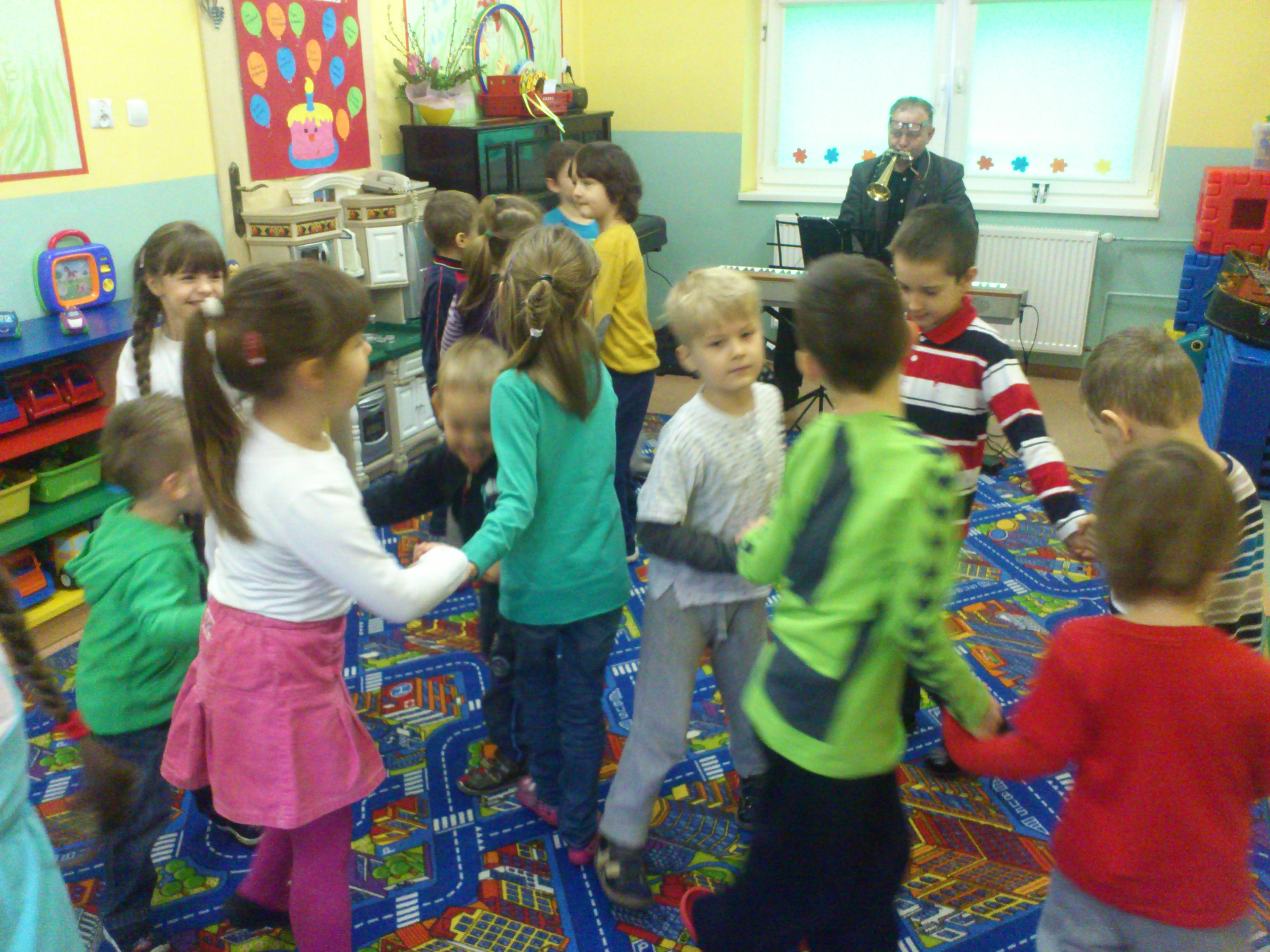 Przedszkole odwiedził niezwykły muzyk. Artysta grał piosenki na wielu instrumentach jednocześnie: na szyi miał zawieszoną trąbkę, na nogach instrumenty perkusyjne, a rękami grał na instrumencie klawiszowym, wydającym dźwięki kontrabasu, fortepianu i organów kościelnych. Człowiek-orkiestra wprawił wszystkich w zdumienie, a zachęcone dzieci chętnie wtórowały mu na przedszkolnych instrumentach.