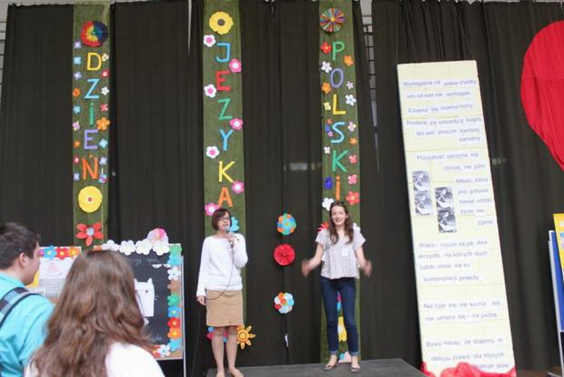 Na przerwach uczniowie słuchali wierszy polskich poetów w niecodziennym wykonaniu. Różne aranżacje sprawiły, że klasyka polskiej poezji stała się dla młodzieży bardziej dostępna. Dezerter, Trzeci Wymiar, Ankh, Justyna Steczkowska, Czesław Śpiewa, Anna Szałapak – to tylko niektórzy wykonawcy, którzy umilali czas młodzieży. Uczniom najbardziej spodobała się „Reduta Ordona” Adama Mickiewicza wykonana przez Trzeci Wymiar. Na długiej przerwie młodzież brała udział w kalamburach, prezentując i odgadując hasła związane np. z lekturami. Natomiast na dziedzińcu szkolnym, w bibliotece i w świetlicy polonistki przeprowadziły konkursy kaligraficzne i językowe. Młodzież rozwiązywała krzyżówki, układała słowa z liter danego wyrazu, pisała tekst pod dyktando. Podczas Dnia Języka Polskiego uczniowie podziwiali zdjęcia rówieśników, biorących udział w konkursie „Czytam, więc jestem. Jestem, bo czytam”.