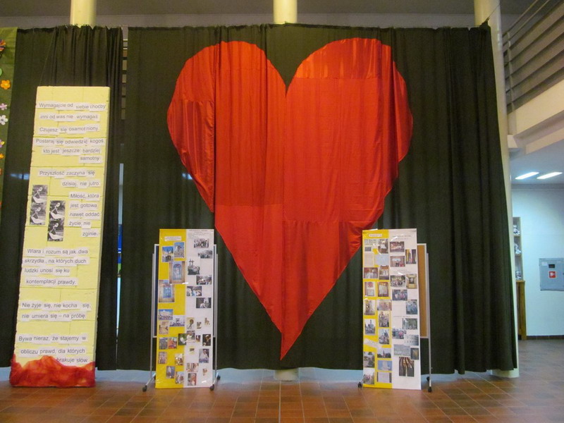 27 kwietnia papież Franciszek ogłosił Jana Pawła II świętym. To bardzo ważny dzień dla wszystkich Polaków i dla nas, uczniów szkoły noszącej Jego imię. Chcąc pokazać ogromny szacunek i podziw dla Patrona, poszczególne klasy przyniosły kawałki czerwonej tkaniny, z której zostało uszyte wielkie serce. Wyeksponowaliśmy je w holu szkoły, obok cytatów z wypowiedzi Jana Pawła II.