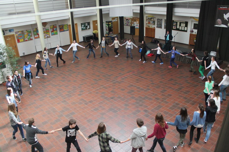 W ramach wizyt partnerskich projektu „Comenius” – „Działać dla przyszłości”, realizowanego przez nasze gimnazjum i szkoły z Francji, Hiszpanii, Niemiec, Rumunii i Włoch, grupa uczniów i nauczycieli przebywała w dniach 6-12 kwietnia w niemieckim Erkelenz. Tematem przewodnim była lokalna ekonomia każdego z partnerów projektu. Uczniowie przedstawiali prezentacje podczas wspólnych zajęć, natomiast dodatkowo zobaczyliśmy miejsca, o których w swoim wystąpieniu mówili Niemcy: odkrywkową kopalnię węgla brunatnego Garzweiler oraz elektrownię Niederaussem. O ekonomii i polityce energetycznej Unii Europejskiej i Erkelenz dowiedzieliśmy się od urzędników pracujących w Brukseli i w miejscowym urzędzie miasta. Poznaliśmy sposoby dbania o środowisko i racjonalnego wykorzystania energii, zwiedziliśmy dom pasywny. W programie znalazły się też spotkania i zajęcia integracyjne, zwiedzanie Erkelenz oraz wizyta w Akwizgranie. M. Madajczyk-Głowacka