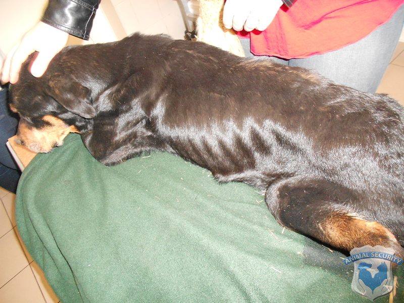 W czwartek, 27 marca do fundacji „Animal Security” wpłynęło zgłoszenie, że na terenie pewnej posesji w Luboniu przebywa suczka rottweilera, która nie daje znaków życia. Dzięki szybkiej interwencji wolontariuszy i współpracy z funkcjonariuszami policji i Straży Miejskiej, udało się przewieźć psa do kliniki. Jak informuje „Animal Security”, właściciel zapewniał, że suczka miała wystarczającą opiekę, jednak zdaniem weterynarza, stan zdrowia psa był efektem kilkumiesięcznych zaniedbań.
