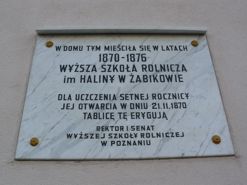 Podczas wykonywania remontu elewacji budynku dawnej Wyższej Szkoły Rolniczej im. Haliny przy ul. Powstańców Wielkopolskich 19, uszkodzono przy demontażu pamiątkową tablicę erygowaną przez Rektora i Senat Wyższej Szkoły Rolniczej w Poznaniu, odsłoniętą uroczyście 21 listopada 1970 r. w setną rocznicę otwarcia szkoły. Po zakończeniu prac remontowych w miejscu uszkodzonej pojawiła się nowa tablica o wymiarach 60 x 70 cm z ta samą treścią, co poprzednio. Została wykonana z marmuru, przedsięwzięcie sfinansowało Miasto Luboń (koszt: 1 500 zł). Oryginalna tablica trafiła do Biblioteki Miejskiej przy ul. Żabikowskiej jako eksponat pamiątkowy wpisany w historię miasta.
